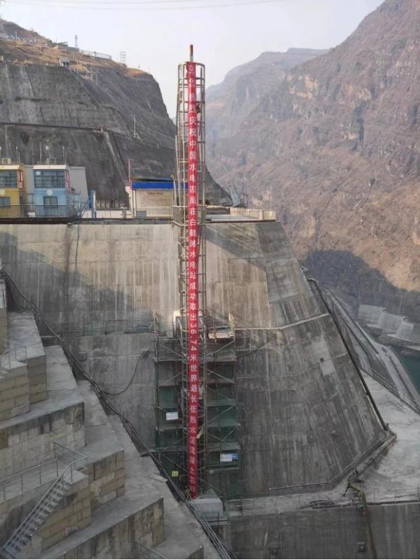 2023年4月12日,白鶴灘水電站左岸11號壩段使用中地裝重探公司研制的GQ-60型工程鉆機取出長36.74米、直徑245毫米低熱混凝土芯樣,這是繼白鶴灘大壩2019年取出25.7米長芯,2022年取出34.86米長芯之后,再次打破世界最長常態(tài)混凝土芯樣紀(jì)錄。
